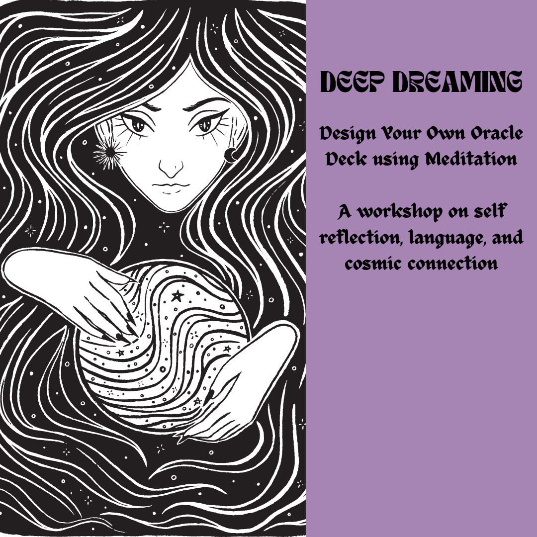 This workshop uses meditation and visualization to create the basis of a 20 card oracle deck. Self reflection will draw out key words or phrases that become the cues of your own personal oracle.
